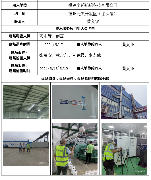 福建宇邦纺织科技有限公司-2024年工作场所职业病危害因素检测
