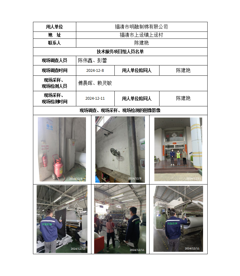 福清明融制棉有限公司-2024年工作场所职业病危害因素检测
