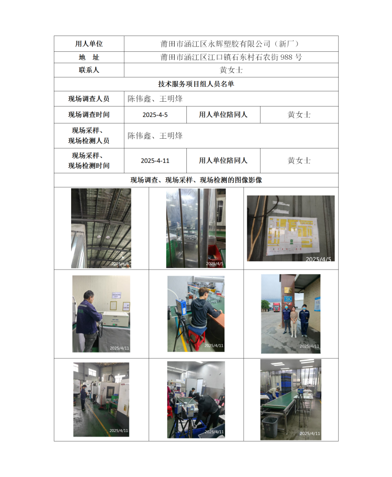 莆田市涵江区永辉塑胶有限公司(新厂)-2025年工作场所职业病危害因素检测