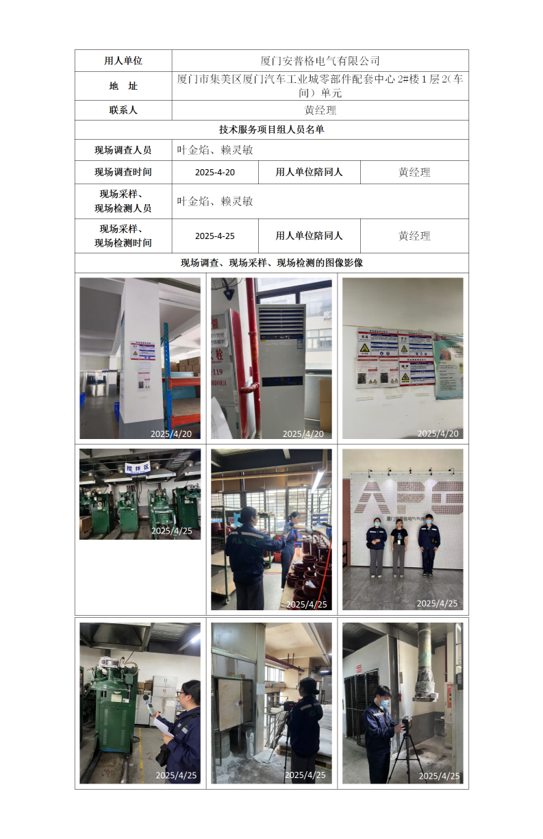 厦门安普格电气有限公司-2025年工作场所职业病危害因素检测