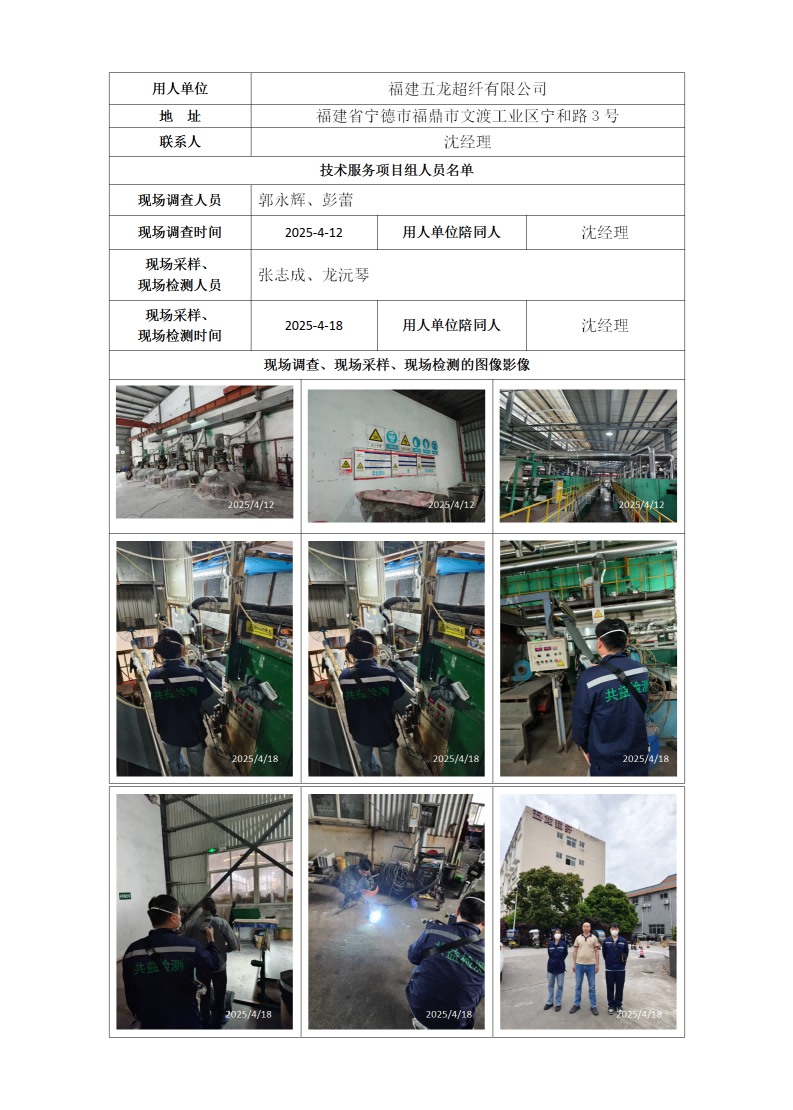 福建五龙超纤有限公司-2025年工作场所职业病危害因素检测