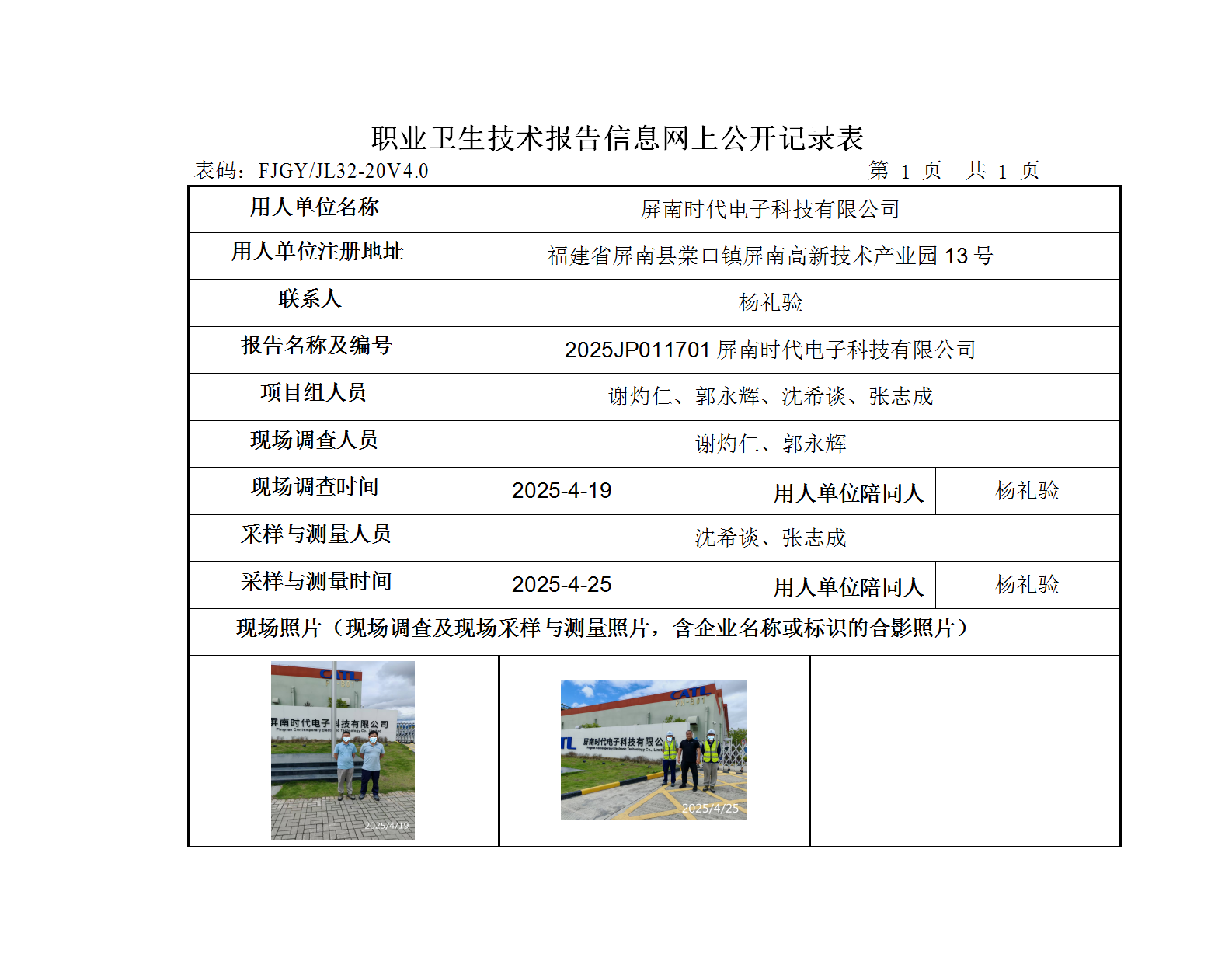屏南时代电子科技有限公司-2025年工作场所职业病危害因素检测