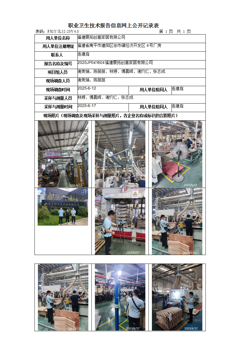 福建展拓创意家居有限公司-2025年工作场所职业病危害因素检测
