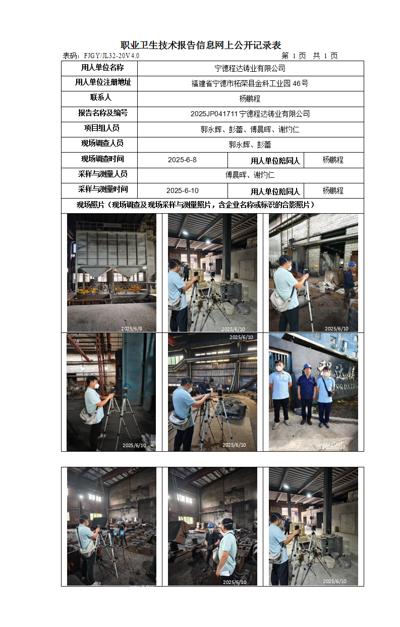 宁德程达铸业有限公司-2025年工作场所职业病危害因素检测