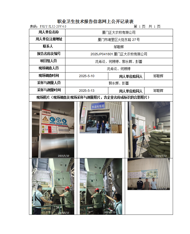 厦门正大农牧有限公司-2025年工作场所职业病危害因素检测