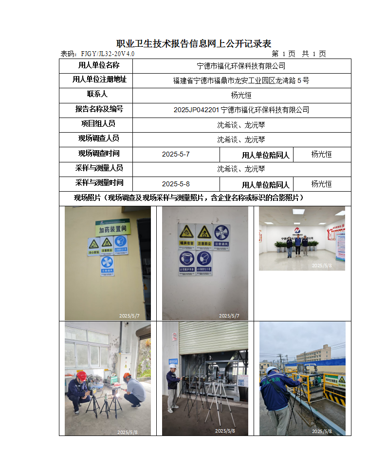 宁德市福化环保科技有限公司-2025年工作场所职业病危害因素检测