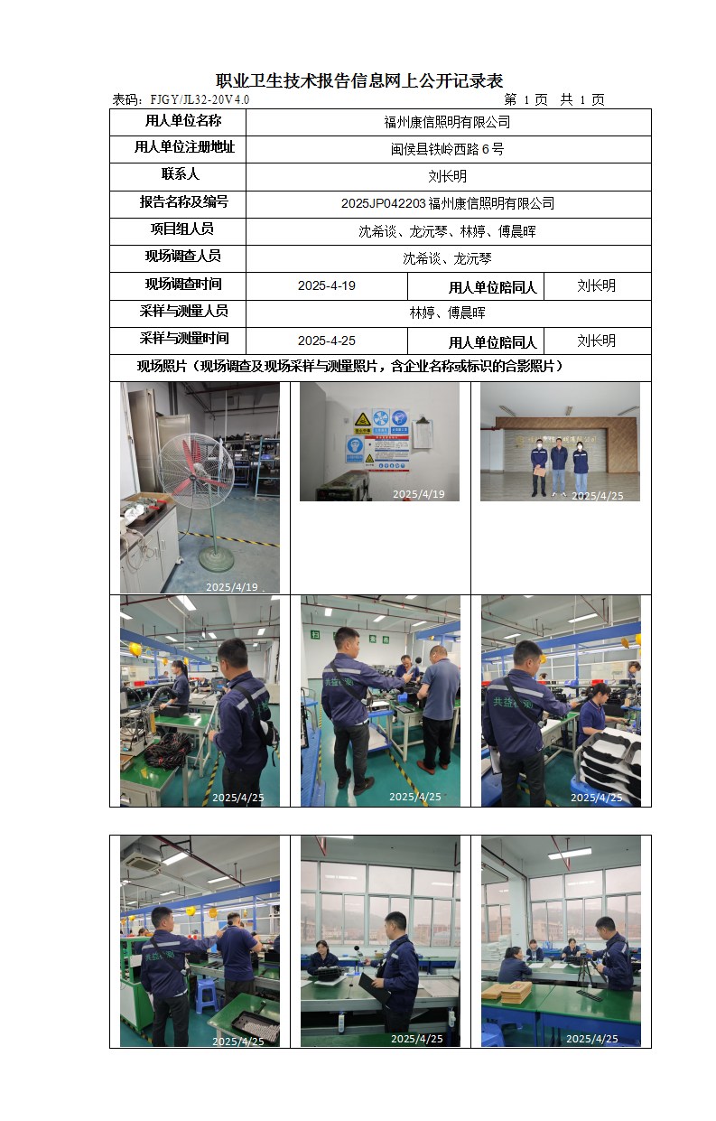 福州康信照明有限公司-2025年工作场所职业病危害因素检测