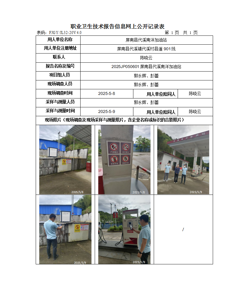 屏南县代溪南洋加油站-2025年工作场所职业病危害因素检测
