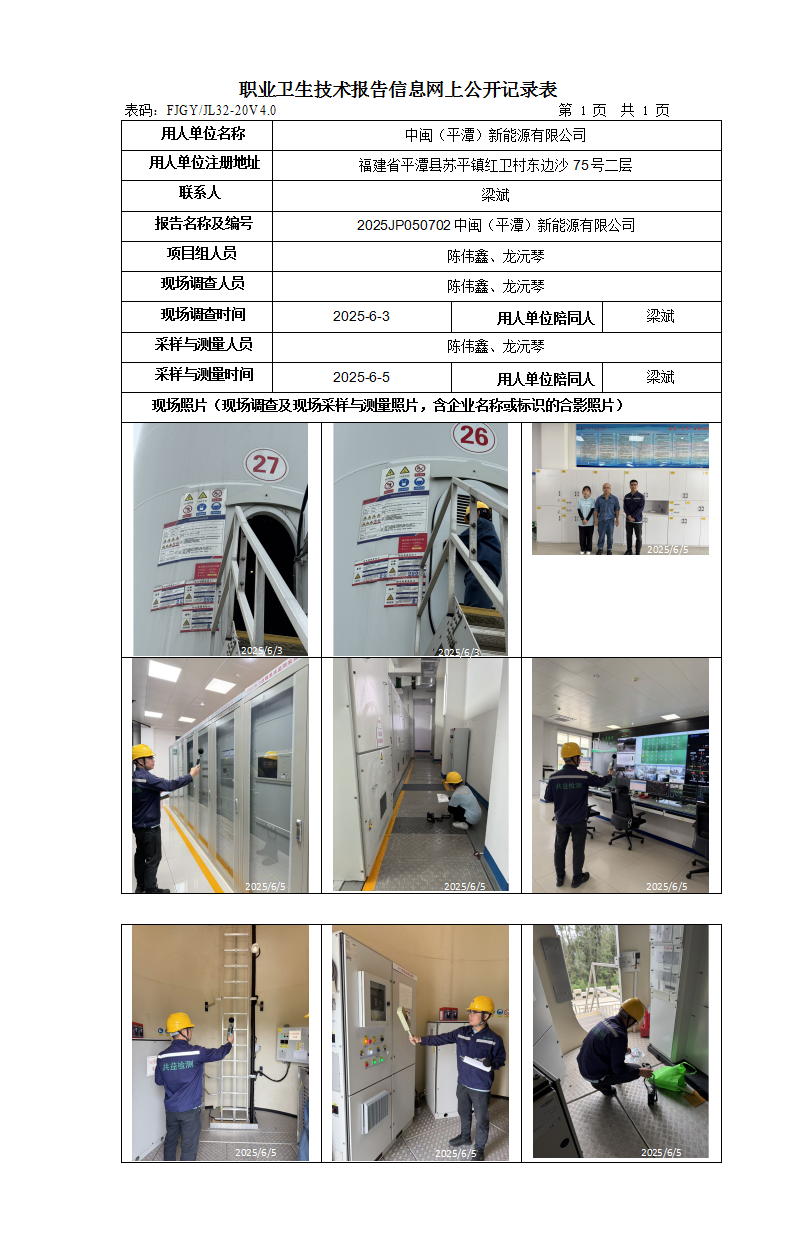 中闽(平潭)新能源有限公司-2025年工作场所职业病危害因素检测