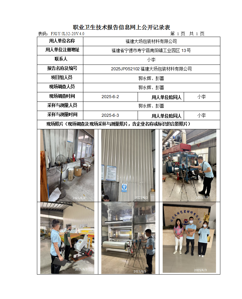 福建大场包装材料有限公司-2025年工作场所职业病危害因素检测