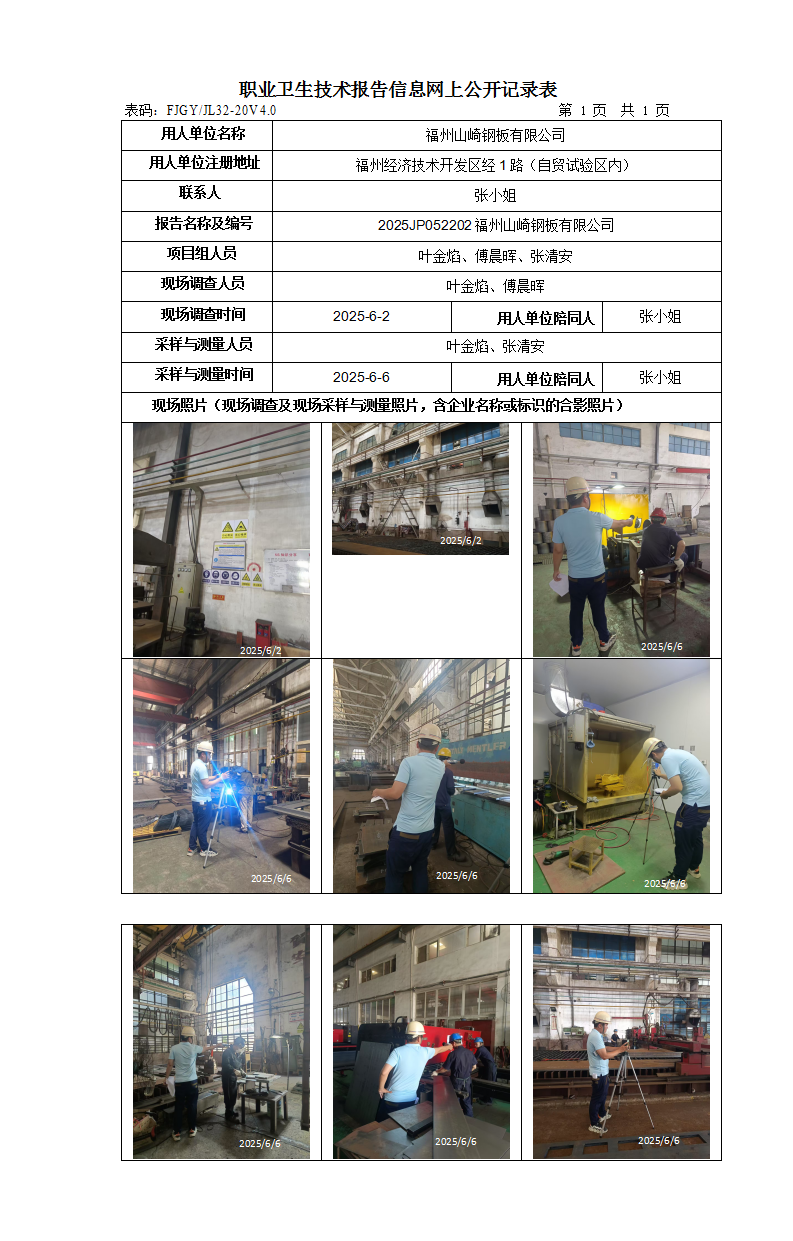 福州山崎钢板有限公司-2025年工作场所职业病危害因素检测