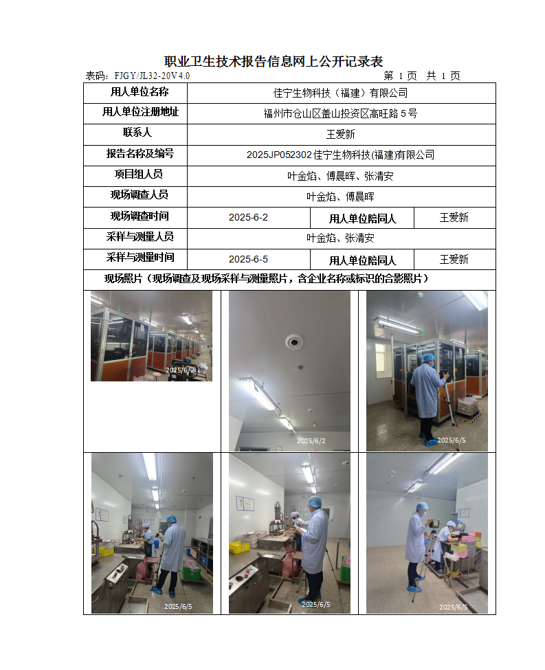 佳宁生物科技(福建)有限公司-2025年工作场所职业病危害因素检测