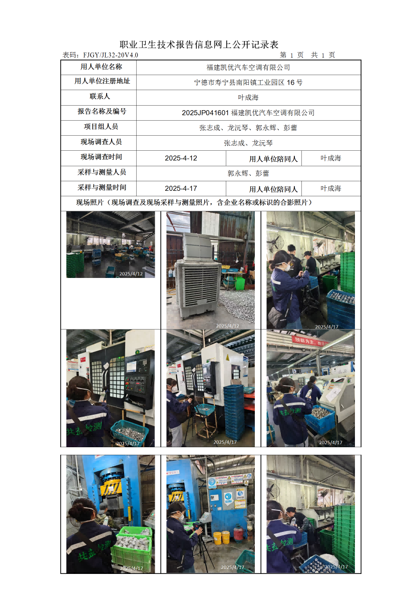 福建凯优汽车空调有限公司-2025年工作场所职业病危害因素检测