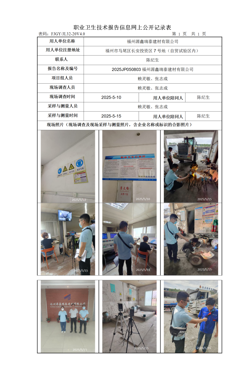 福州源鑫瑞泰建材有限公司-2025年工作场所职业病危害因素检测