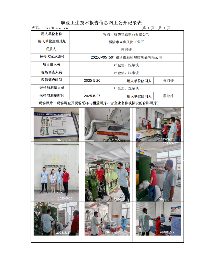 福清市胜德塑胶制品有限公司-2025年工作场所职业病危害因素检测