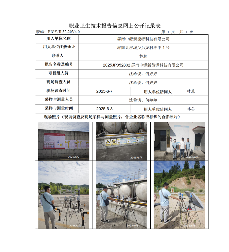 屏南中源新能源科技有限公司-2025年工作场所职业病危害因素检测