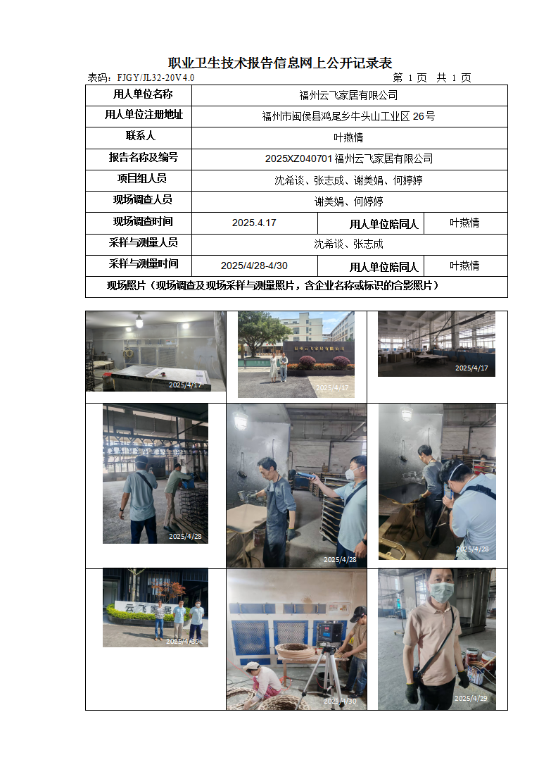 福州云飞家居有限公司-2025年职业病危害现状评价