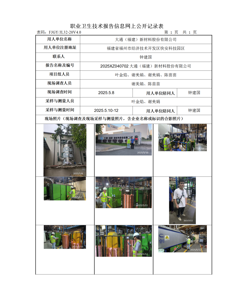 大通(福建)新材料股份有限公司-2025年职业病危害现状评价