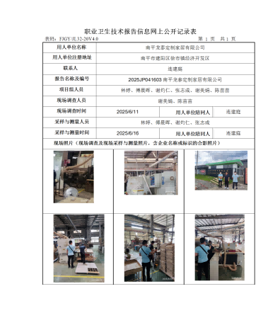 南平龙泰定制家居有限公司-2025年工作场所职业病危害因素检测