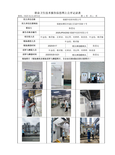 福建华佳彩有限公司-2025年工作场所职业病危害因素检测