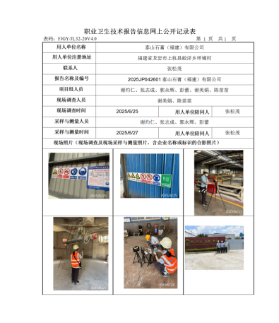 泰山石膏(福建)有限公司-2025年工作场所职业病危害因素检测