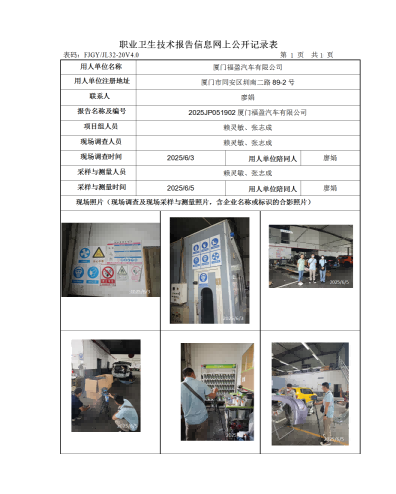 厦门福盈汽车有限公司-2025年工作场所职业病危害因素检测
