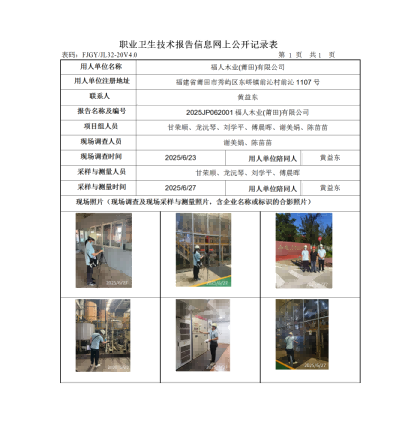 福人木业(莆田)有限公司-2025年工作场所职业病危害因素检测