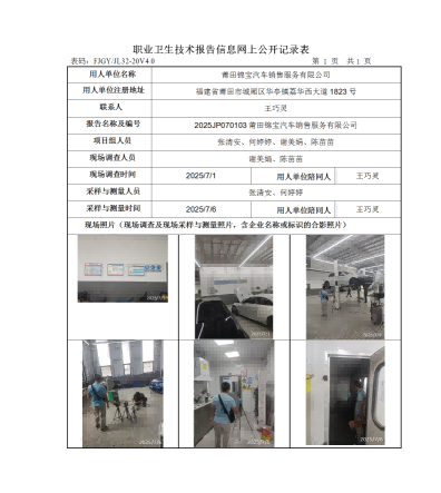 莆田锦宝汽车销售服务有限公司-2025年工作场所职业病危害因素检测