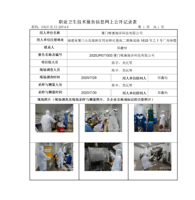 厦门唯康海洋科技有限公司-2025年工作场所职业病危害因素检测