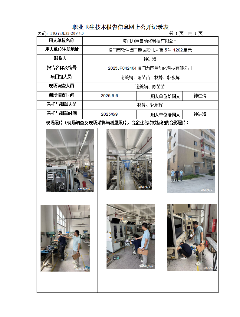 厦门力巨自动化科技有限公司-2025年工作场所职业病危害因素检测
