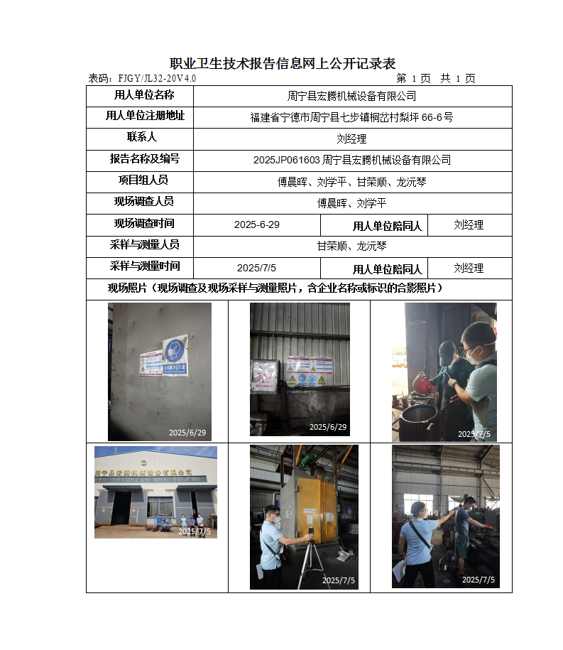 周宁县宏腾机械设备有限公司-2025年工作场所职业病危害因素检测