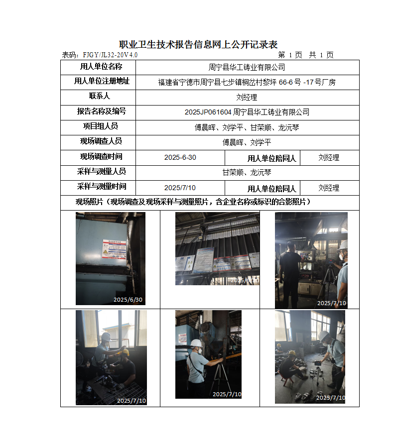 周宁县华工铸业有限公司-2025年工作场所职业病危害因素检测