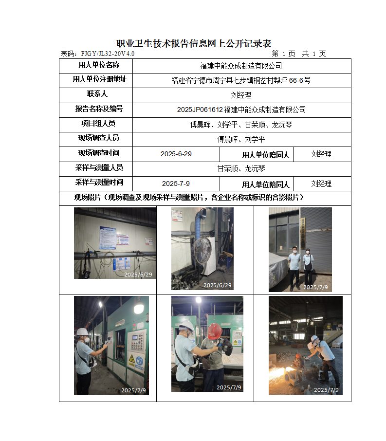 福建中能众成制造有限公司-2025年工作场所职业病危害因素检测