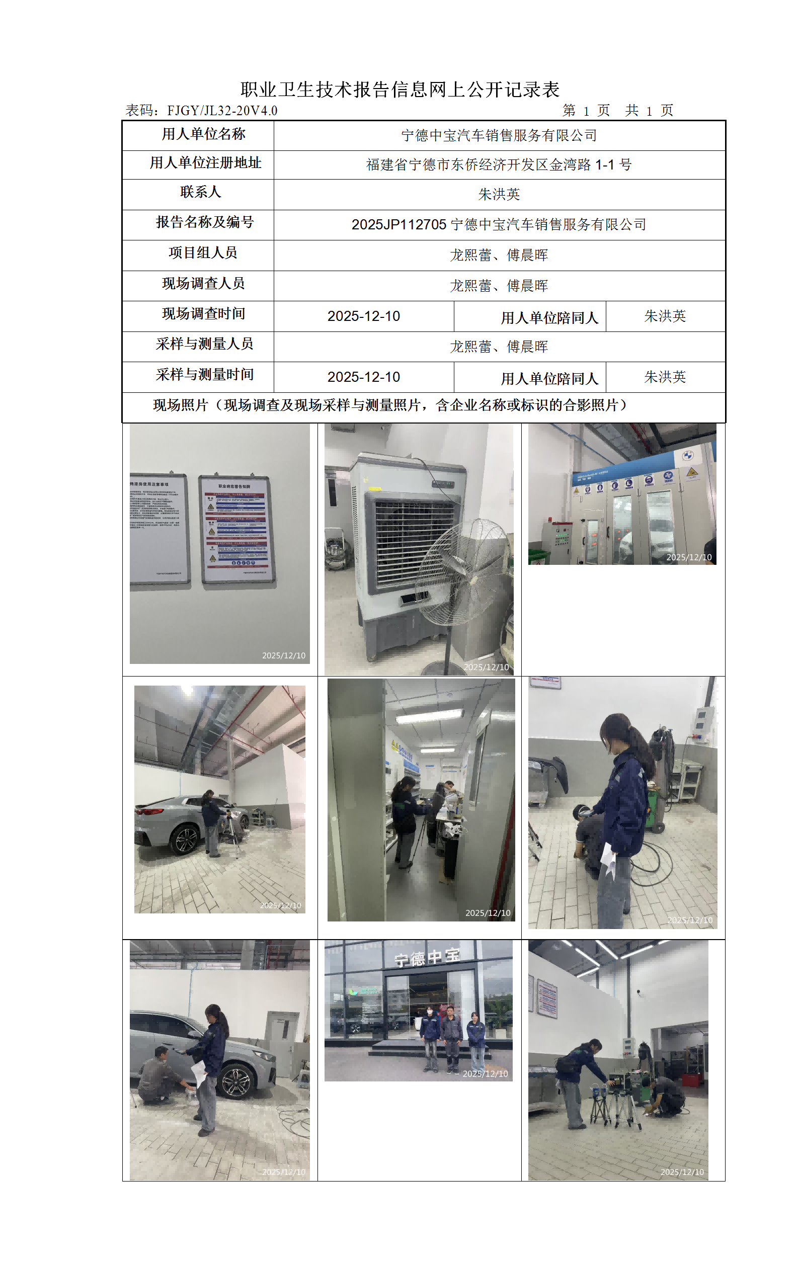 宁德中宝汽车销售服务有限公司-2025年工作场所职业病危害因素检测