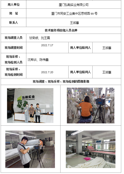 厦门弘翰实业有限公司 工作场所职业病危害因素检测-福建共益安全环保科技