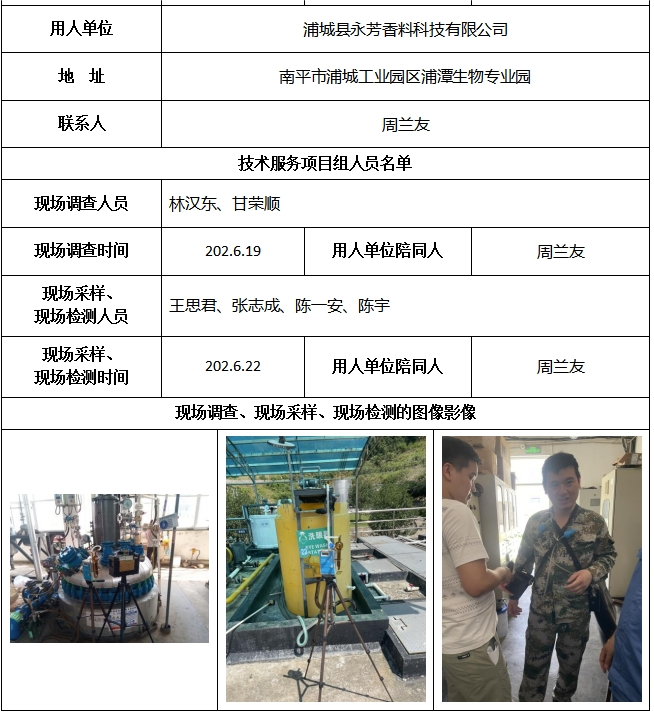 浦城县永芳香料科技有限公司2022年工作场所职业病危害因素检测
