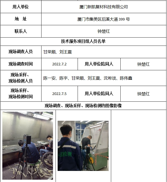 厦门新凯复材科技有限公司2022年工作场所职业病危害因素检测