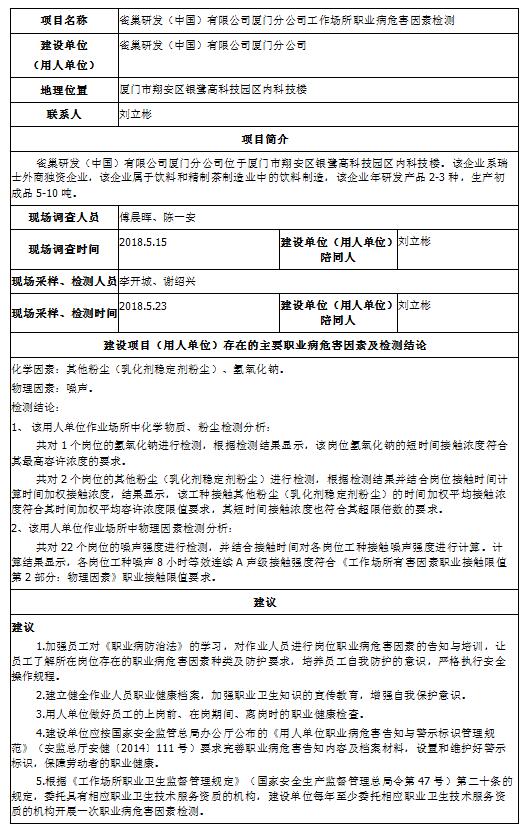 雀巢研发(中国)有限公司厦门分公司